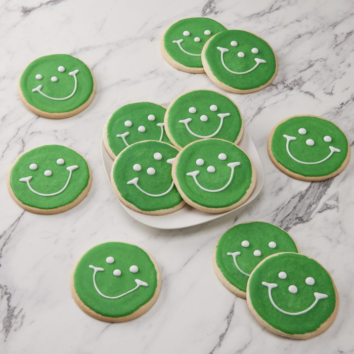 Go for the Green with our Green Pack of Mini Smiley® Cookies! Featuring a green base with our iconic face in white, our Green Pack is great for extending an olive branch or supporting someone’s green light for a big opportunity, available in packs of 12 and 50.