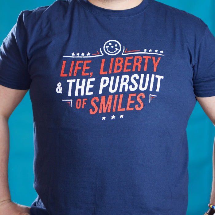We hold these truths to be self-evident. . .and delicious! A play on the famous Declaration of Independence quotation, this limited-edition shirt is great to wear on the 4th of July or when you feel like celebrating Smiley® Cookies or Smiles (which for us is every day). Available in various adult sizes.